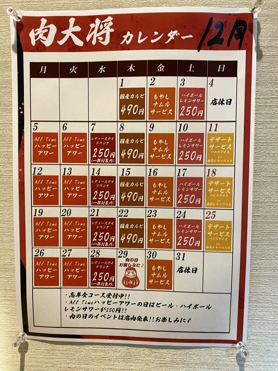 たまたま11月の29日に行ったので肉の日サービスを受けれました。
