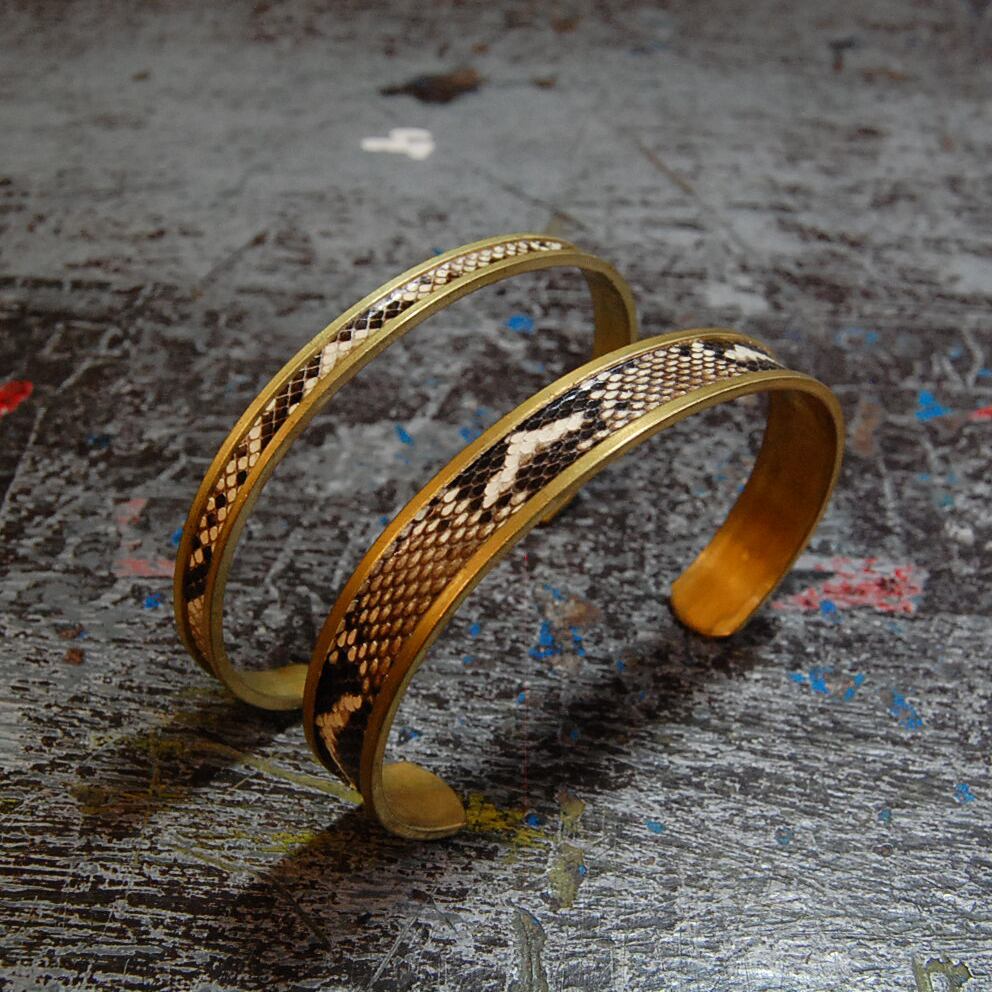 真鍮製のレールバングルに、通常のダイアモンドパイソンよりも細かい模様が美しく配置された