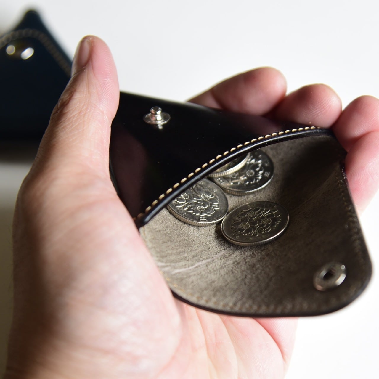 特別にコードバン(馬革)で仕上げた小銭入れ。小銭が25枚程度入ります。