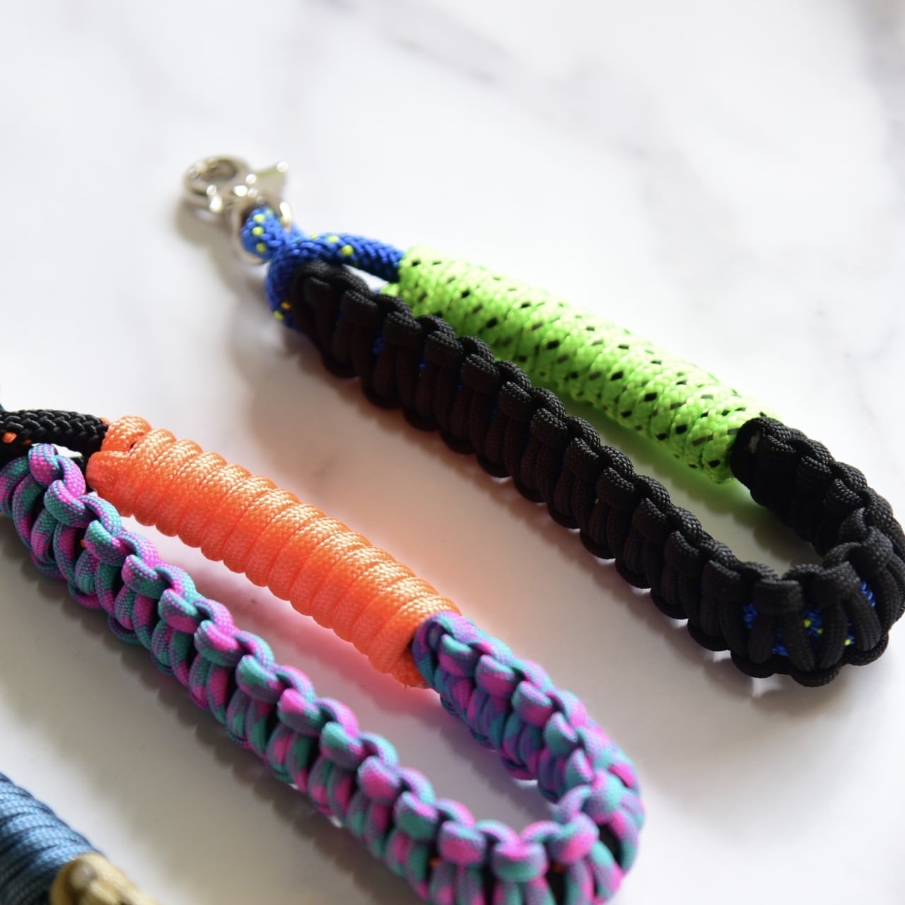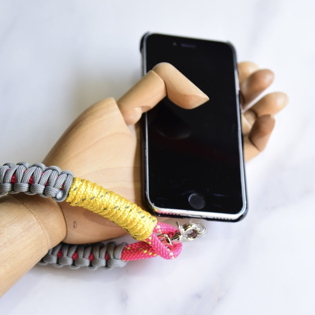 パラシュートにも使われる強度の高いパラコードを編み込んだ手首につけるスマートフォン(携帯電話)ストラップ